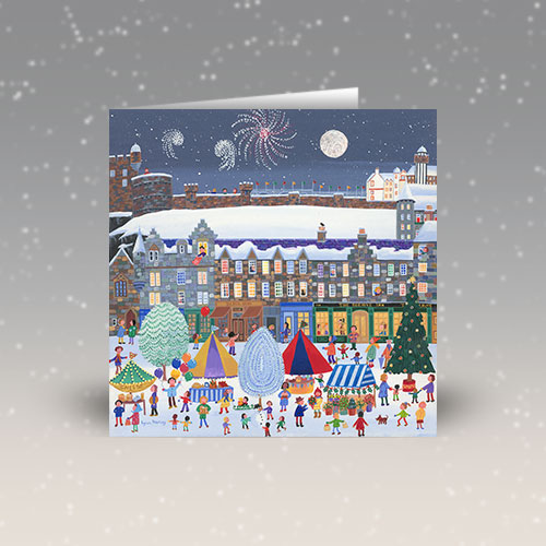 150 x 150 mm square card with envelope - blank inside. Message inside: MERRY CHRISTMAS AND A HAPPY NEW YEAR.