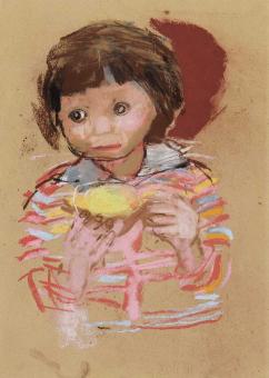 Buy "Girl in Striped Jumper" by Joan Eardley. Open Edition giclée print. Available in 2 sizes. Print on demand.